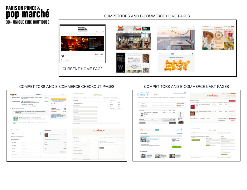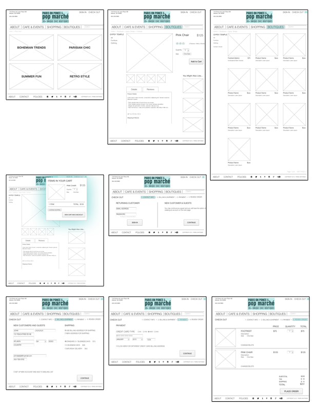 The project goal was to create a micro site that is an extension of the Paris on Ponce brand and clearly shows all that the space has to offer. The shopping experience was tailored to a specific group of users (provided). Inventory was curated by the class from existing products in the retail store, before moving on to individually complete the rest of the UX process. Users require that the checkout experience be easy, fast and reliable and that policies and item details be clear and easy to find. Visible reviews and activity on social media were important to reinforce the “coolness” factor. Deliverables included research, testing, affinity mapping, information architecture, user flows, sketches, wireframes and a clickable prototype.