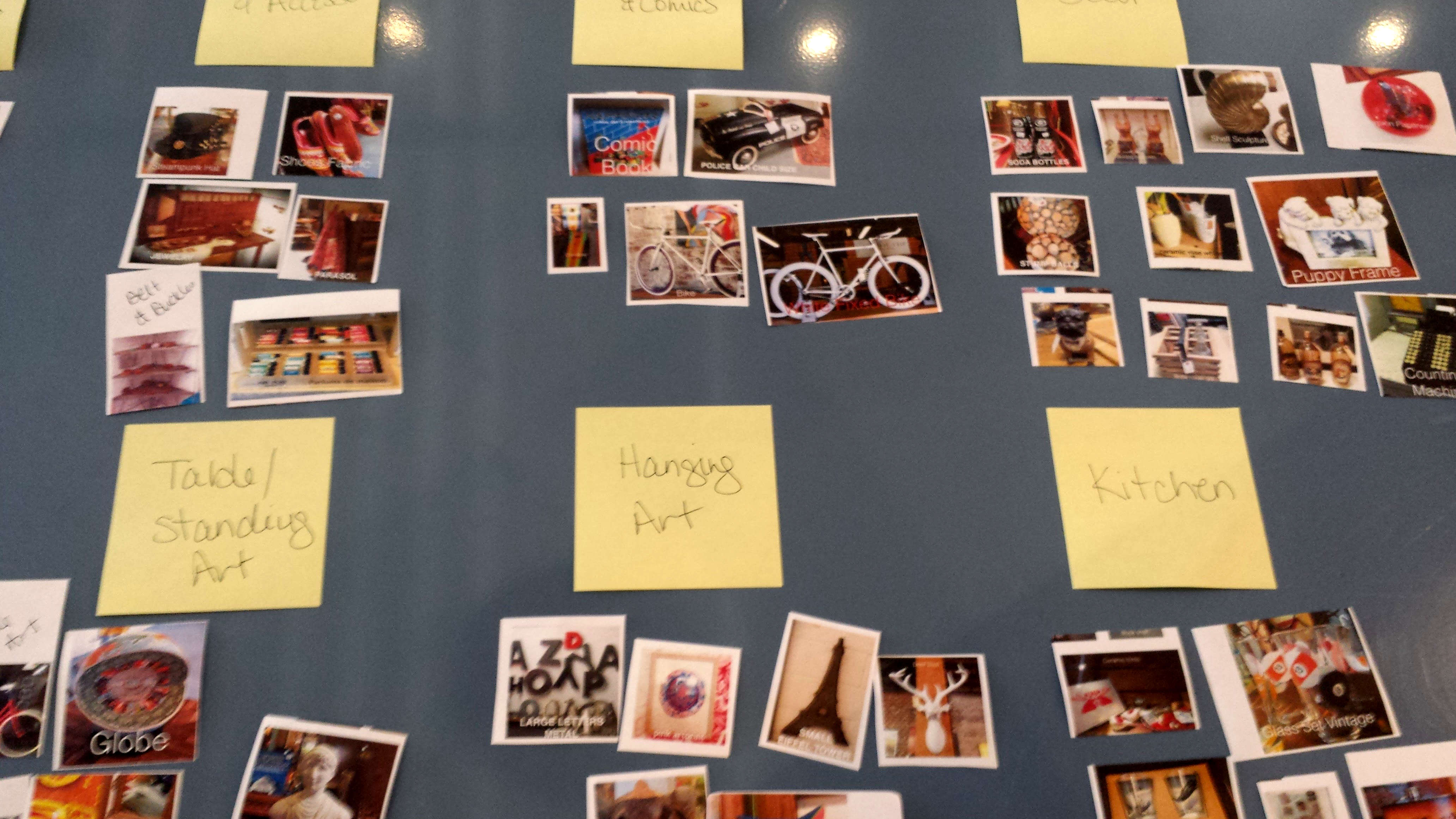 Because of the large number of product items, and the wide variety of types of items, we used card sorting to help identify categories for grouping the items on the website.